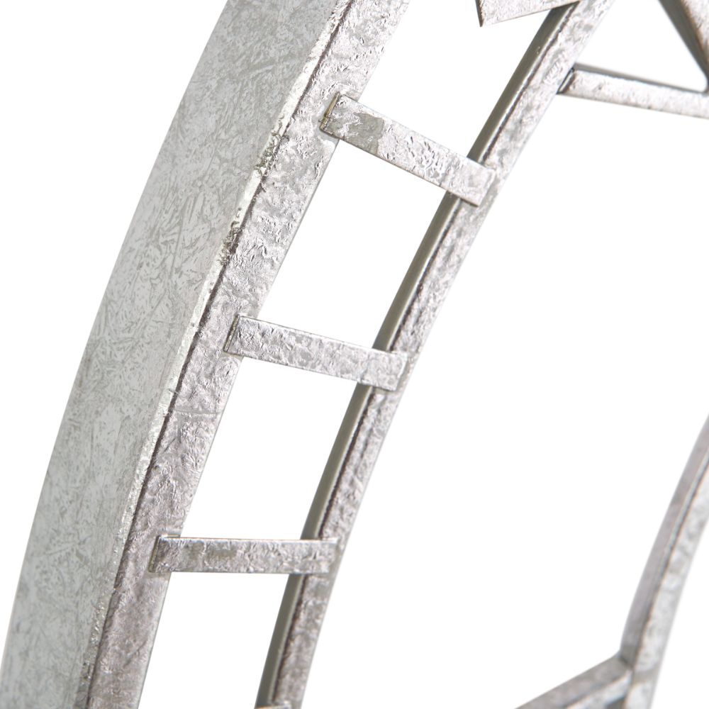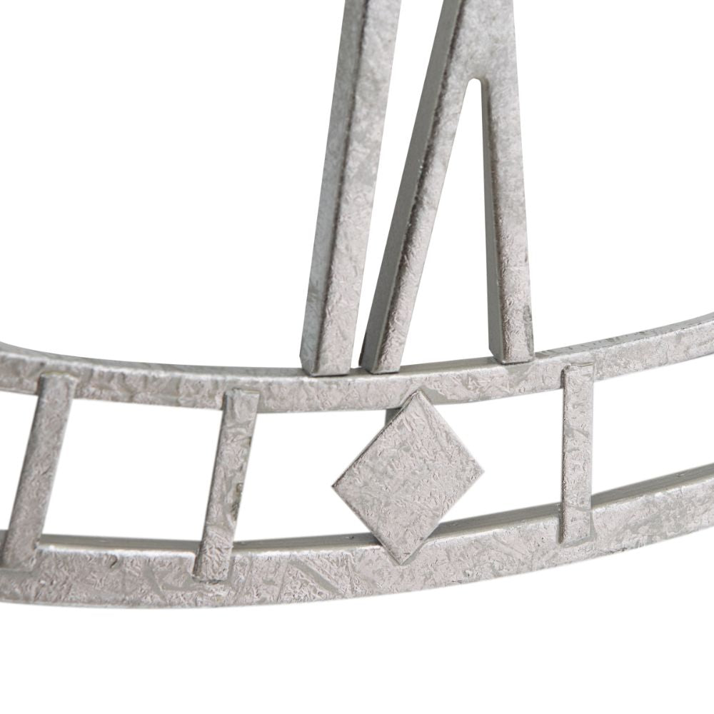Add vintage charm to your interior with this large round wall clock in an elegant antique silver finish. The open metalwork design paired with bold Roman numerals creates a timeless look that suits both classic and contemporary settings.