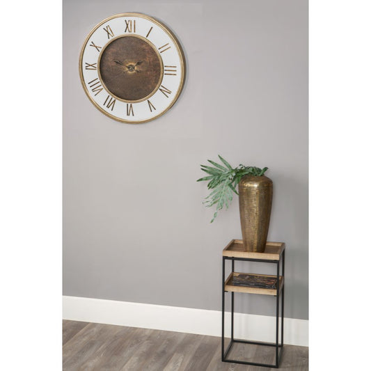 Wood Antique Gold and Geo Print Mirror Wall Clock