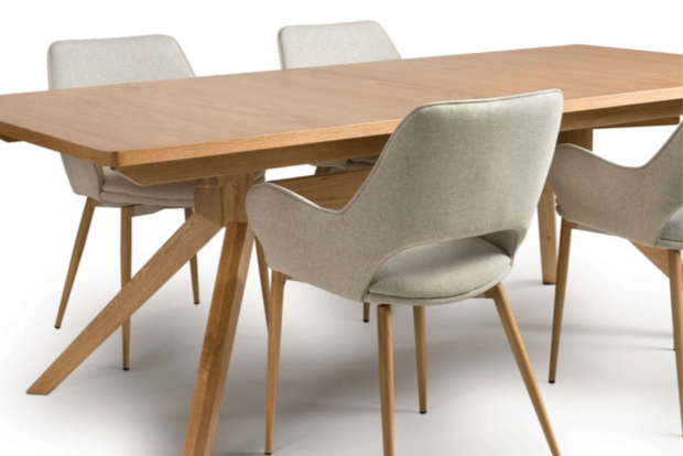 The eye-catching splayed legs and angular frame give this table a modern sculptural feel, adding strength and standout character to your dining space.