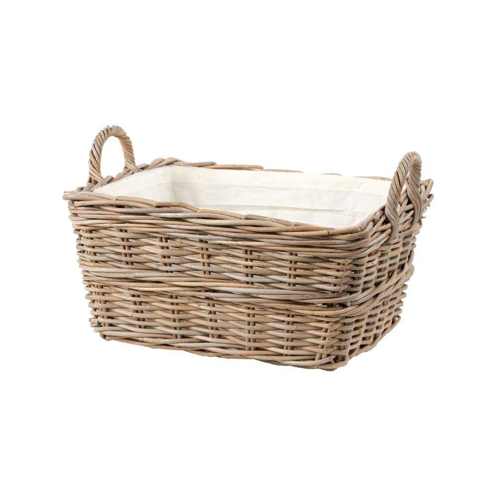 Kubu Rectangular Handled Laundry Basket | Handcrafted Rattan with Fabric Lining