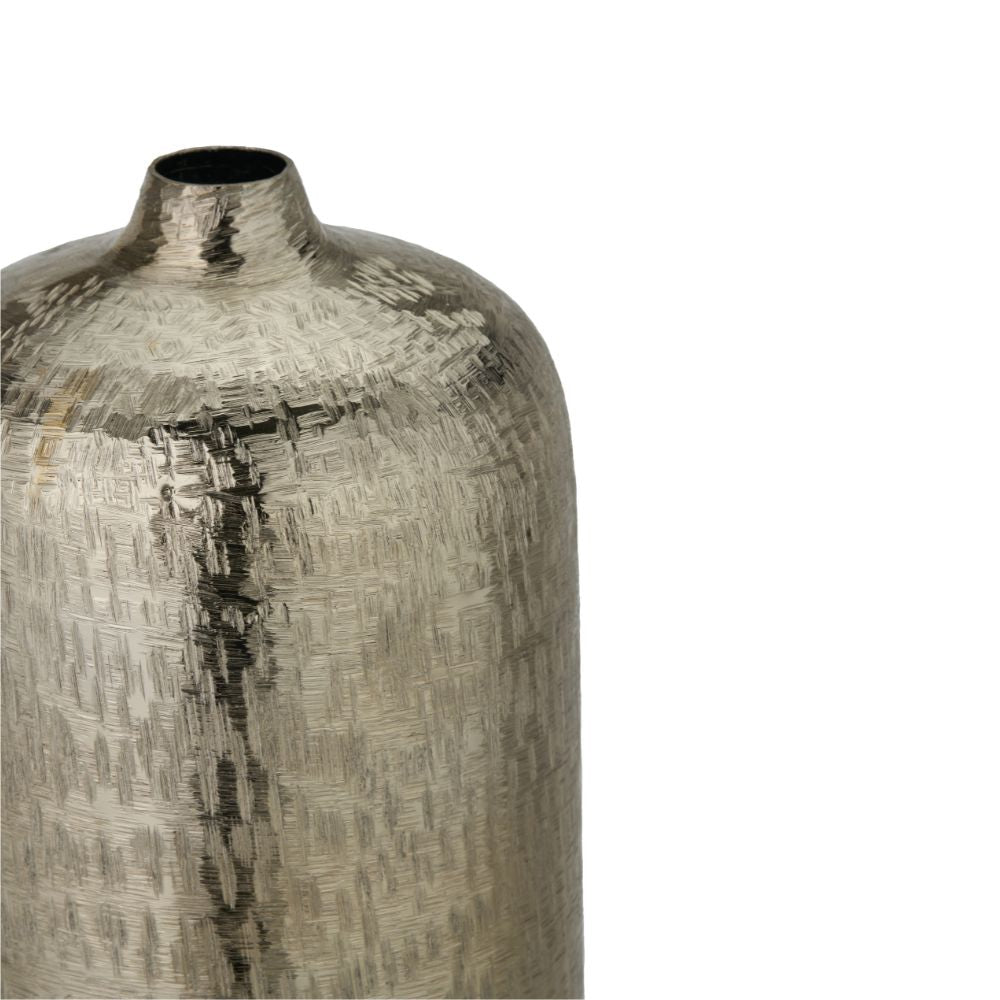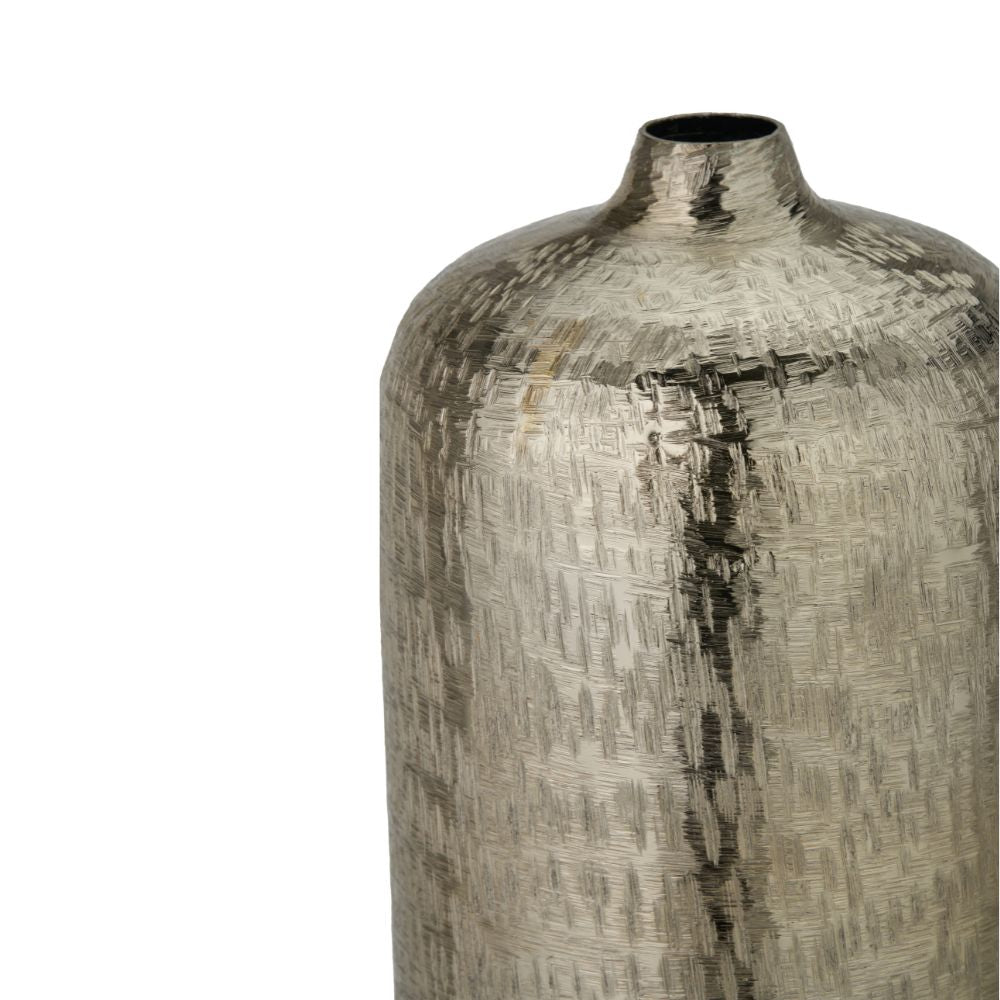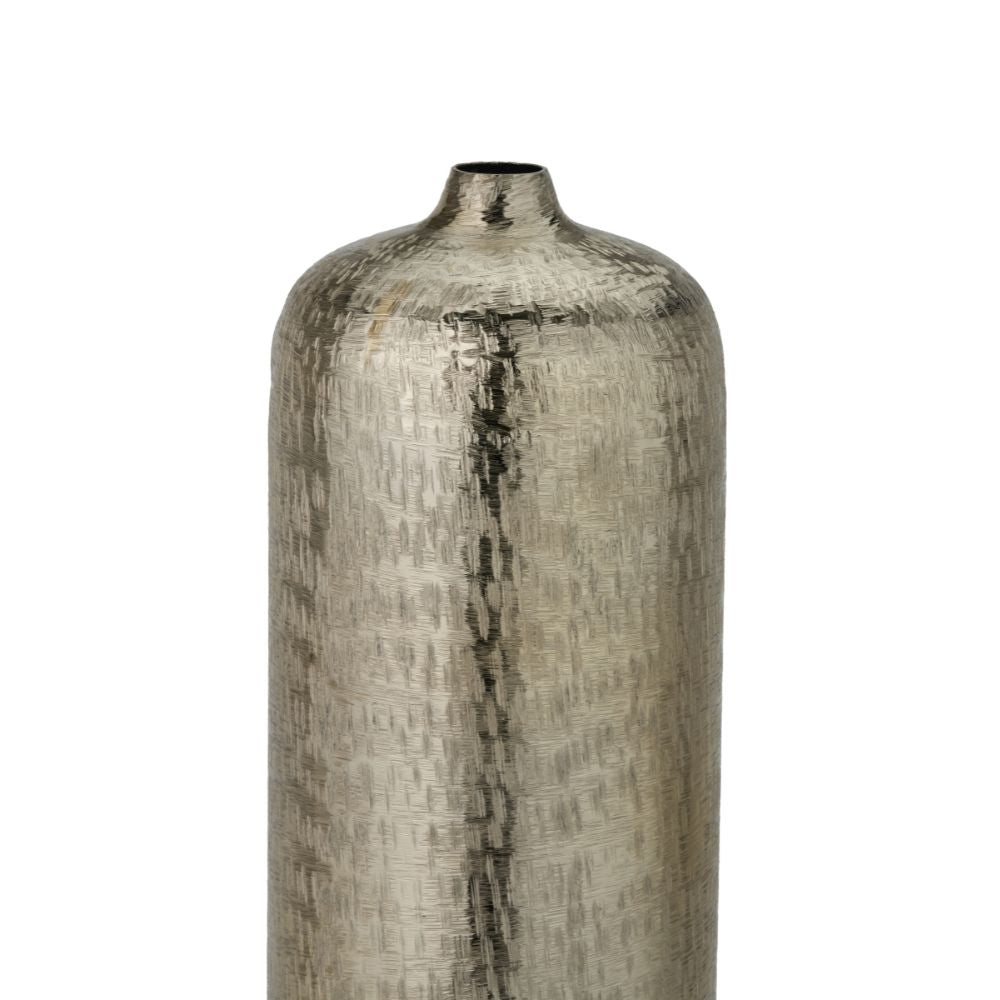 Elevate your décor with this tall hammered metal vase, available in a striking silver or gold finish. Handcrafted in India, it features a beautifully textured surface that reflects light and adds depth to your space. The elegant silhouette and metallic tones make it a versatile piece for a variety of interior styles.