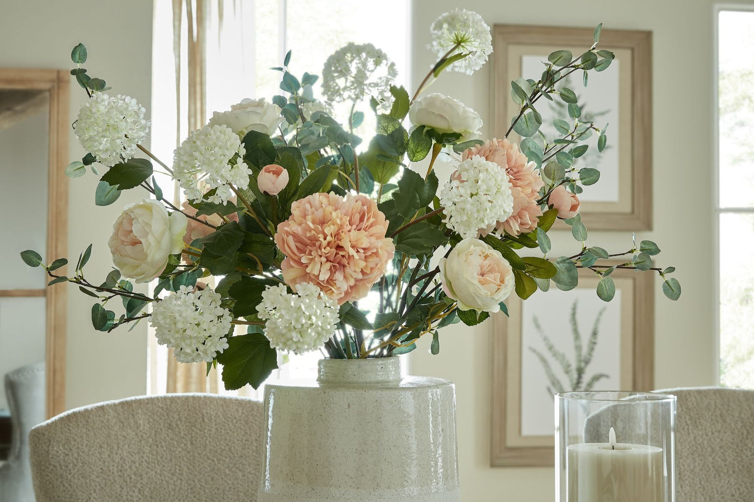 To keep your flowers looking fresh, gently dust them with a soft, dry cloth or a feather duster. For deeper cleaning, use a hairdryer on a cool, low setting to blow away dust. Avoid using water or harsh cleaning agents, as these can damage the materials.